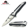 This is our new design with special function for easy opening. The blade is made of reliable type D2 steel. The blade offers consistent performance and value. It is an excellent utility tool made from high quality materials for both professionals and tourism lovers. The handle is G10 material sturdy and comfortable. A knife for daily carrying in your pocket.